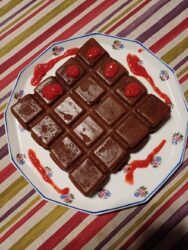Servir avec un coulis de fruits rouges ou autres fruits. On peut oser les agrumes en retirant le maximum de peau. On peut aussi envisager d’accompagner d’une boule de glace